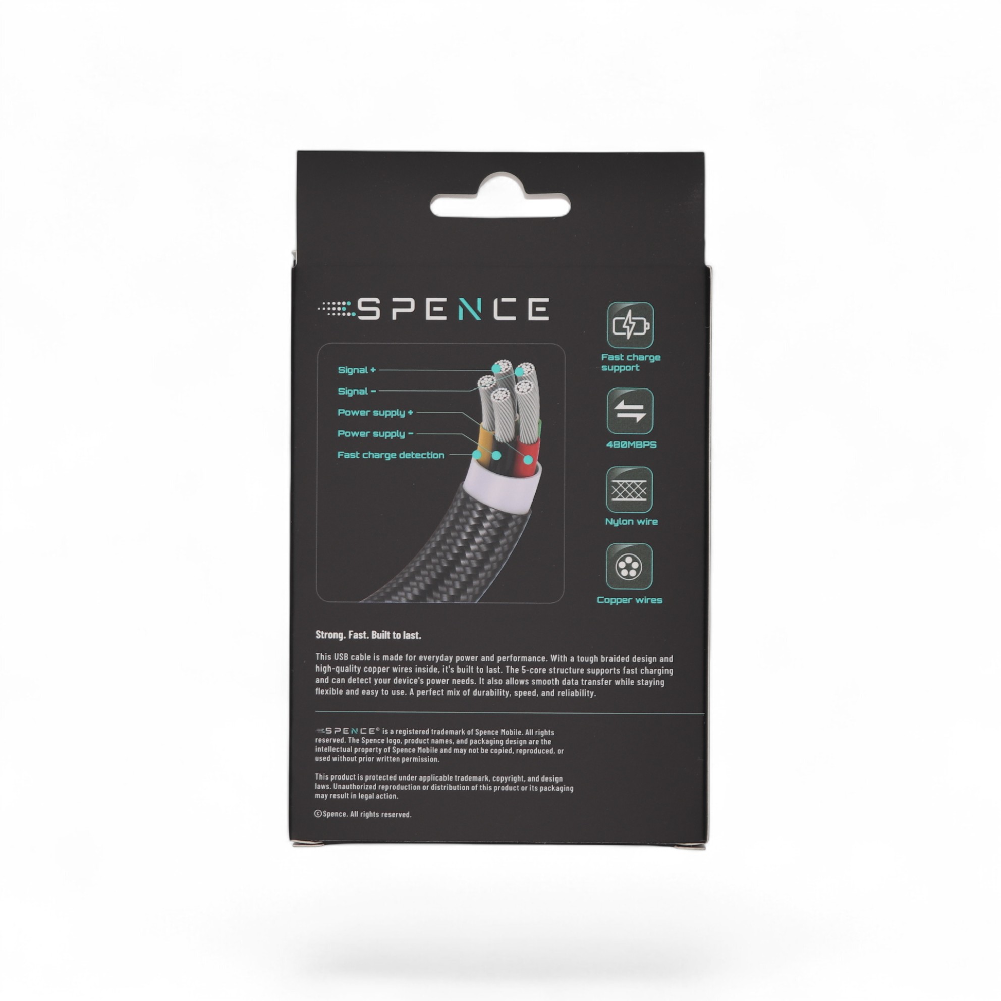Woven USB charge- and datacable including fast charge detection. 100% coper wiring.